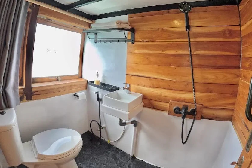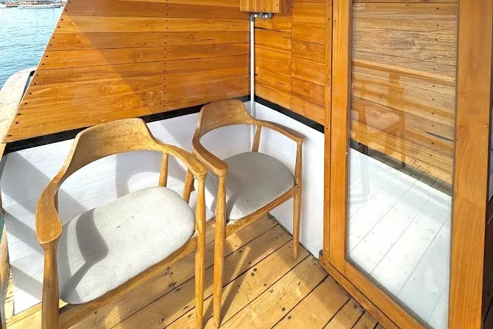 By mid-morning, we’d anchored in a cove off Komodo Island, the ranger station just visible through the trees. The dragon walk was warm, the trail dusty underfoot, but the descent back to the boat felt earned. Lunch waited on the shaded dining deck—grilled fish, papaya salad, cold coconut water cracked open tableside. The breeze caught the edges of the awning, and someone played soft jazz from a phone. This wasn’t fine dining on white linen, but it was honest, fresh, and perfectly timed. The rhythm of the trip felt lived-in, not rehearsed.