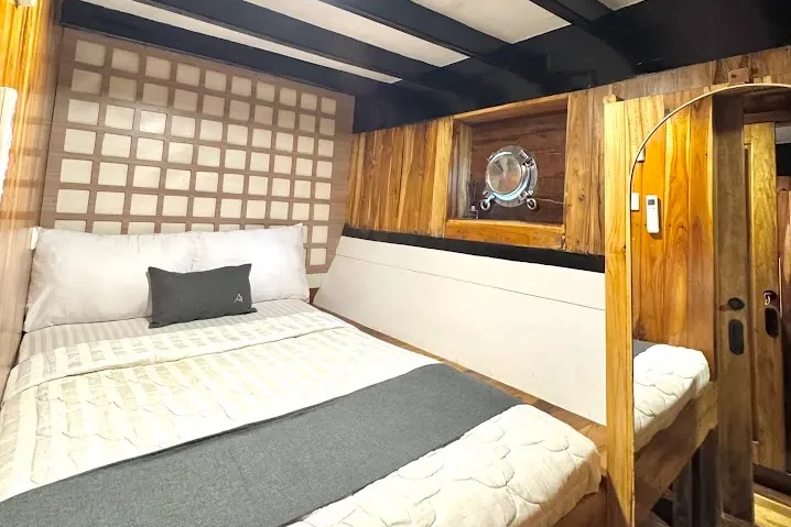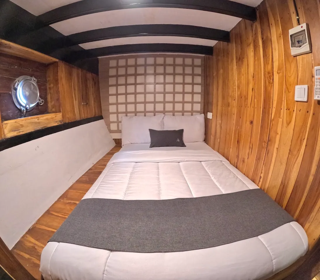 The first light wasn’t pink yet, but the sky was softening behind Padar Island as I stepped onto the foredeck. The crew had already slipped anchor in silence, the engine a low hum beneath the creak of teak. No rush, no announcements—just the boat gliding into the grey water, bow pointing toward the island’s curved spine. That quiet start set the tone: Andalucia II doesn’t shout luxury, it moves with it. Built long enough to carry tradition in her lines, at 26.4 metres she has room to breathe—four cabins, but never a crowd, even with 18 guests.