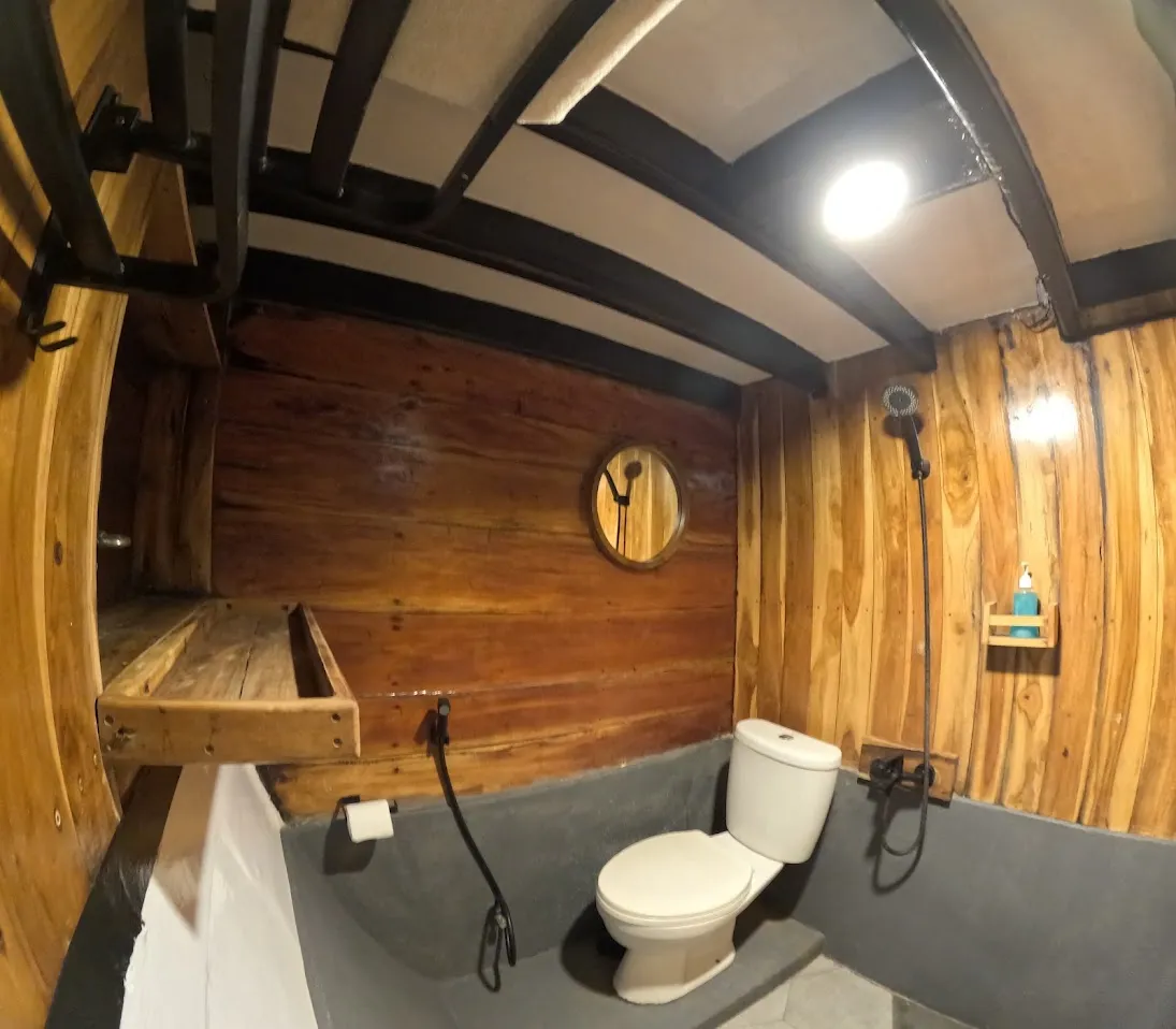 Evening anchored near Kalong, the sky turned orange behind the mangroves. Bats began their slow spiral out of the trees. Dinner was served under string lights—chicken satay, stir-fried kangkung, fried tempeh. The crew moved quietly between tables. One played guitar after dessert, not for show, but because someone asked. The boat felt like it belonged here—not an intruder, not a showpiece, but part of the current.